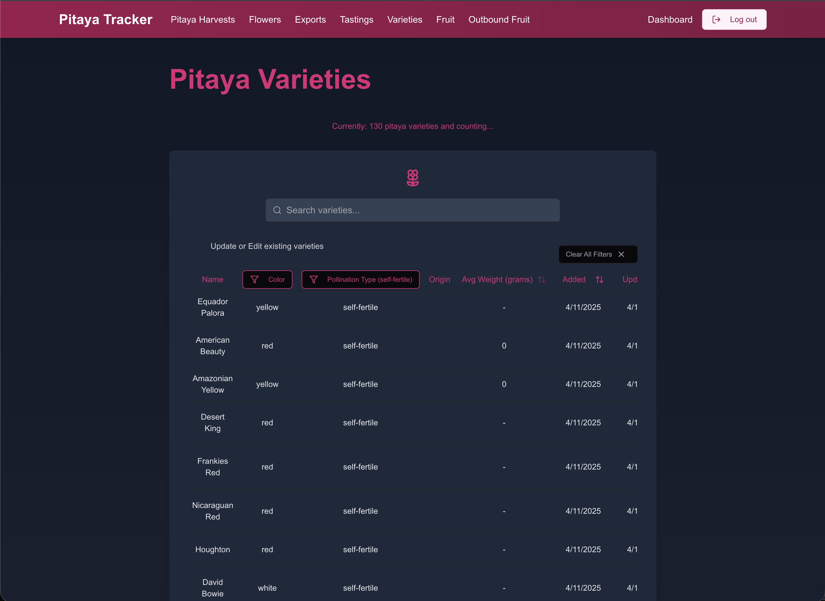 A farm management system for a dragon fruit farm in Mozambique — tracking 130 variants, flowering cycles, taste profiles, and international exports.